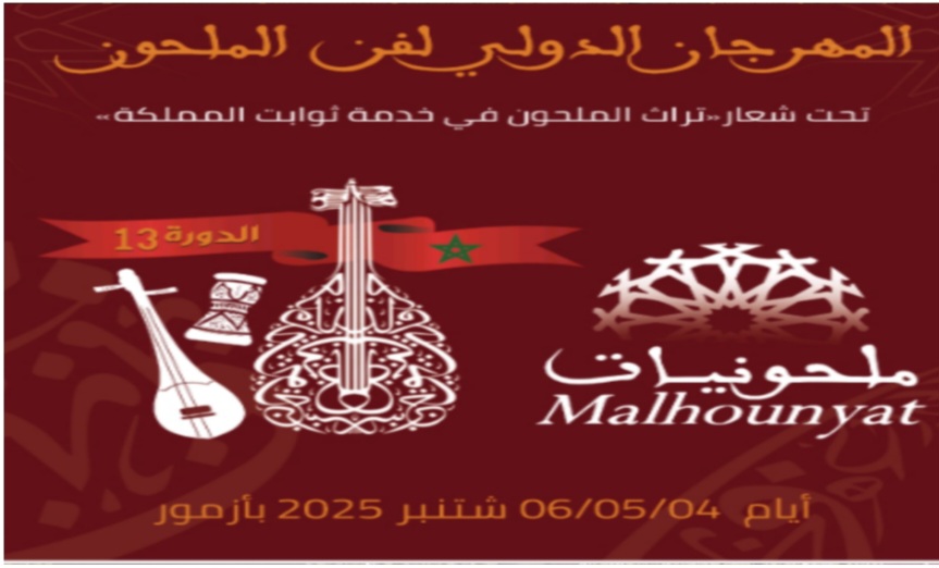 تحتضن مدينة أزمور أيام 4 و5 و6 شتنبر 2025، فعاليات الدورة الثالثة عشرة للمهرجان الدولي لفن الملحون ” ملحونيات” الذي ينظم هذه السنة تحت شعار: “تراث الملحون في خدمة ثوابت المملكة”.